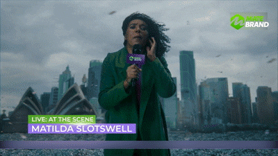 A breaking-news-style weather report warns about an approaching “hurricane of special perks,” featuring a live segment from central Sydney – combining local grounding with absurd escalation.